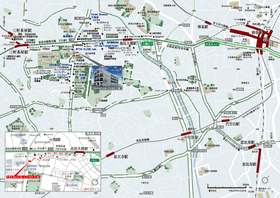 『PREMIUM CUBE 三宿』のアドレスは世田谷区池尻二丁目。