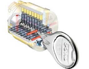 精密・複雑な2WAYロータリータンブラー方式とロッキングタンブラー方式を組み合わせたディンプルキーを採用しました。
